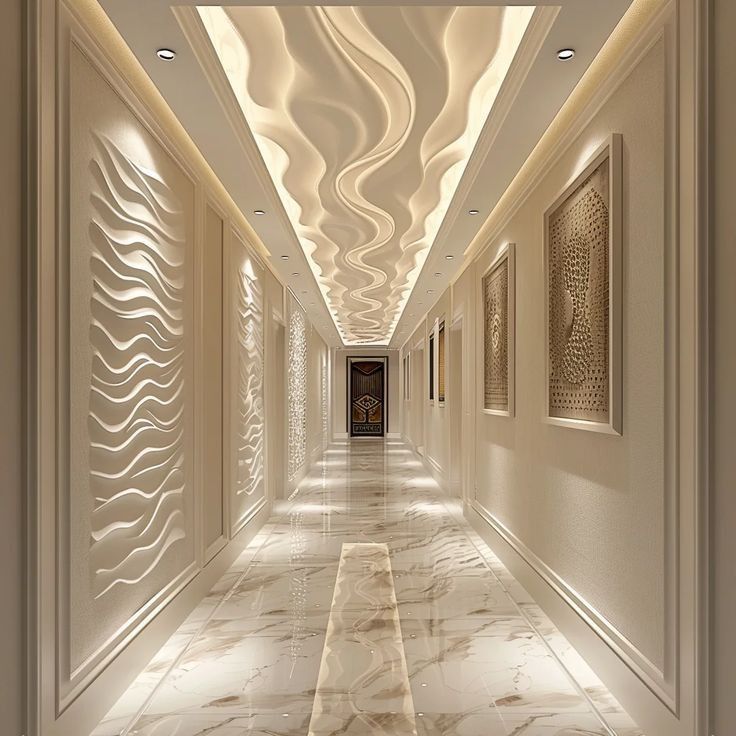 - التصاميم ثلاثية الأبعاد تضيف عمق وتأثير بصري رائع على الصالون، مما يجعل السقف يبدو كقطعة فنية، يمكن تنفيذ هذه التصاميم باستخدام أشكال مستوحاة من الطبيعة أو الهندسة.