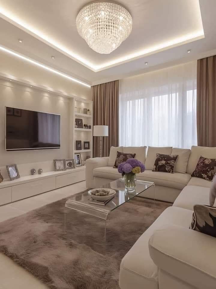 - يجب أن يتماشى تصميم السقف مع أسلوب الأثاث ولون الجدران والإضاءة العامة للصالون.