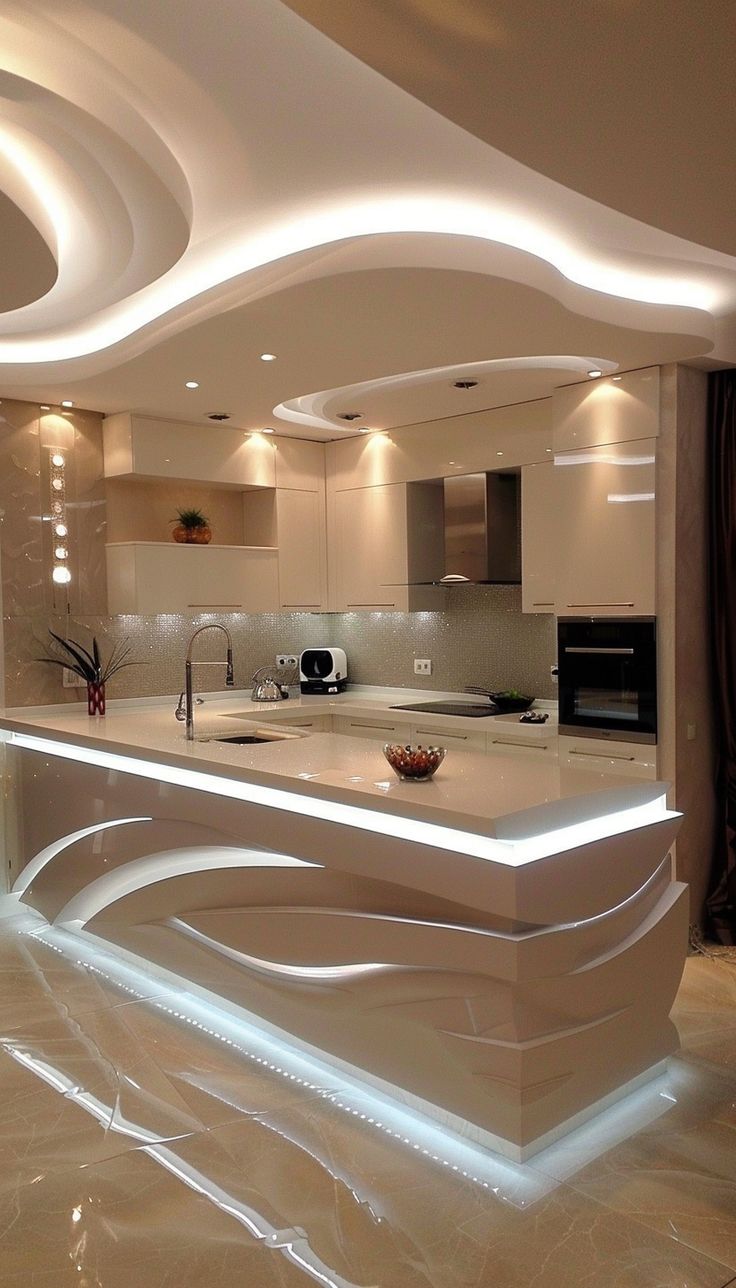 - الإضاءة تلعب دور محوري في إبراز جمال السقف، يمكن استخدام مصابيح LED المخفية أو السبوت لايت لإضافة أبعاد مميزة، خاصة في المساحات الطويلة.