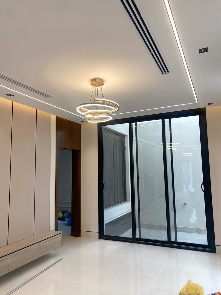 - تلعب الإضاءة دور كبير في إبراز جمال تصميم الجبس بورد، تأكد من اختيار شكل يتيح لك دمج الإضاءة بشكل جيد، سواء كانت إضاءة مخفية أو معلقة، استخدام الإضاءة بشكل مدروس يساهم في تحسين تأثير الجبس بورد ويعزز من جمال التصميم.