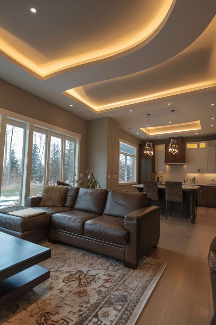 من أبرز مميزات الأسقف متعددة المستويات هي قدرتها على دمج الإضاءة المخفية بين المستويات، ما يساعد في خلق أجواء دافئة وجمالية مع إضاءة غير مباشرة، يمكن إضافة إضاءة LED أو إضاءة سبوت لايت داخل التجاويف بين المستويات، مما يعزز جمال التصميم.