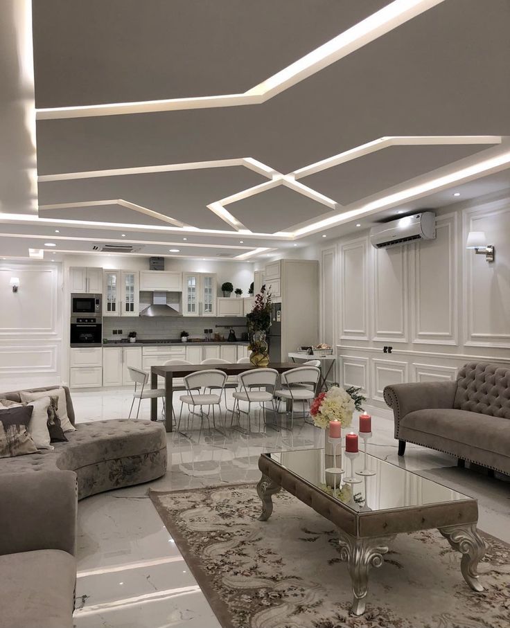 - تأثير الإضاءة لا يقل أهمية عن الشكل، تأكد من أن اشكال جبس بورد التي تختارها تسمح بدمج الإضاءة المخفية بشكل فعال، ذلك يعزز الجمالية العامة ويخلق جو من الفخامة والراحة، خاصة في الغرف الكبيرة أو المساحات التي تحتاج إلى مزيد من التوهج.