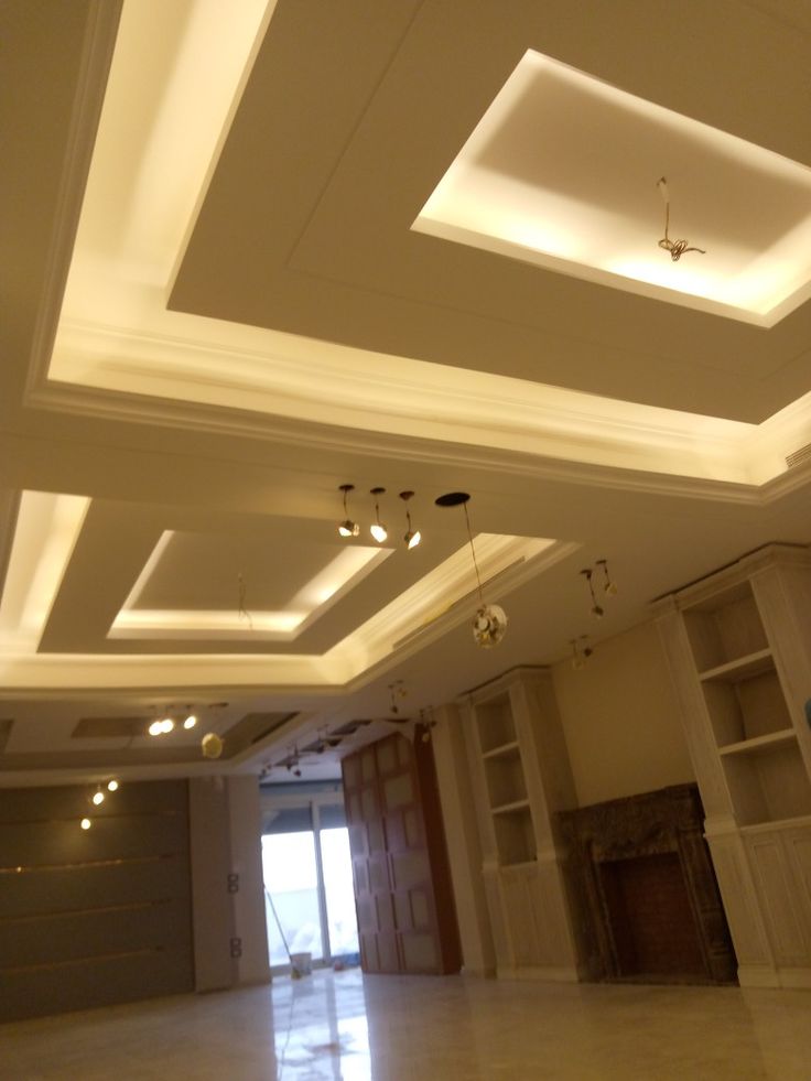 أحد أكثر اشكال جبس بورد للصاله استخدام في الصالات هو التصميم متعدد المستويات، يتكون هذا النوع من السقف من عدة طبقات أو مستويات مختلفة من الجبس بورد، مما يخلق تأثير بصري مميز، إضافة الإضاءة المخفية بين هذه المستويات يمكن أن يبرز الأبعاد المختلفة للتصميم ويعطي انطباع بالاتساع، التصاميم متعددة المستويات تتيح لك إنشاء شكل مميز وفخم للصالة، مما يجعلها من أكثر الخيارات شيوعًا للمساحات الكبيرة.