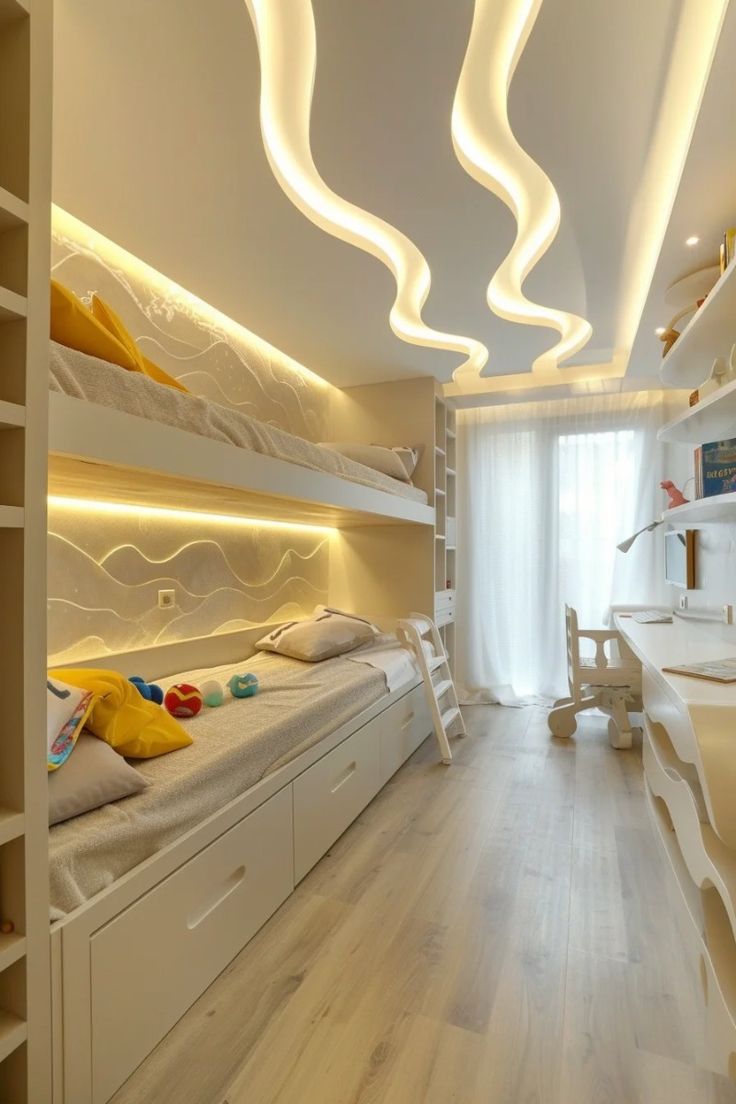 - تلعب الإضاءة دور هام في إبراز جمال تصميم الجبس بورد، يمكنك دمج الإضاءة المخفية داخل أسطح الجبس بورد لإضافة لمسة من الرومانسية أو الحداثة.