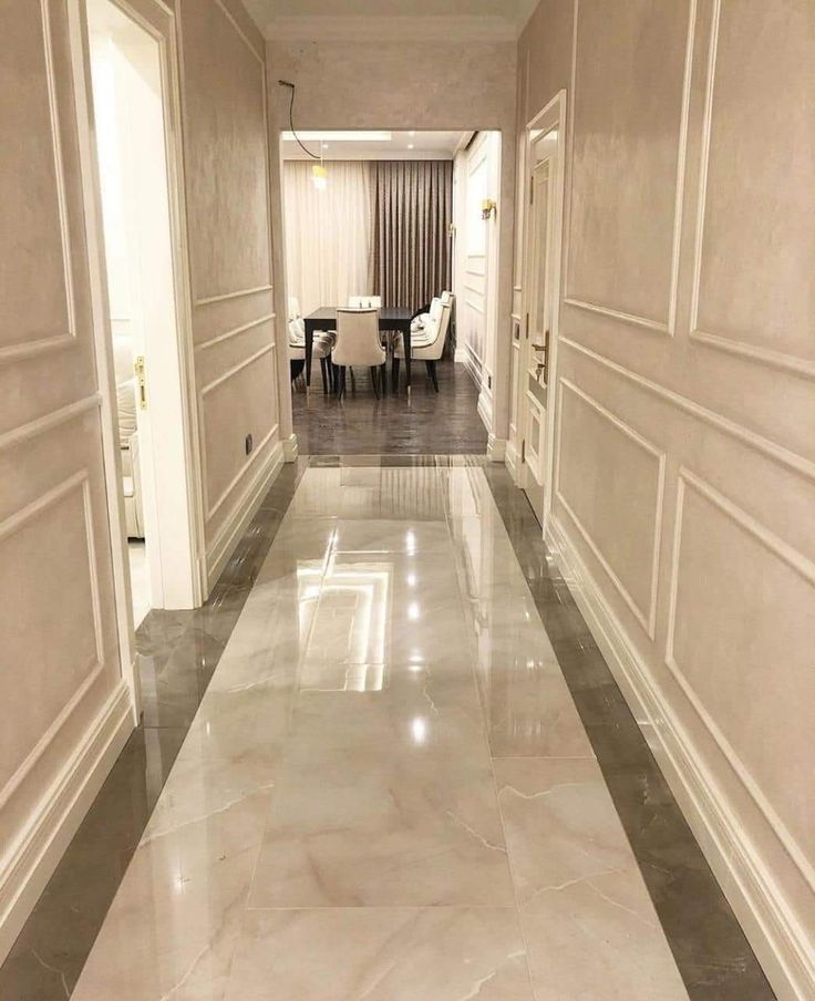 - من الخيارات الشائعة الأرضيات الخشبية (باركيه)، السيراميك، البورسلين، أو الرخام، يتم تثبيت الأرضيات بشكل دقيق لضمان التسوية التامة.
