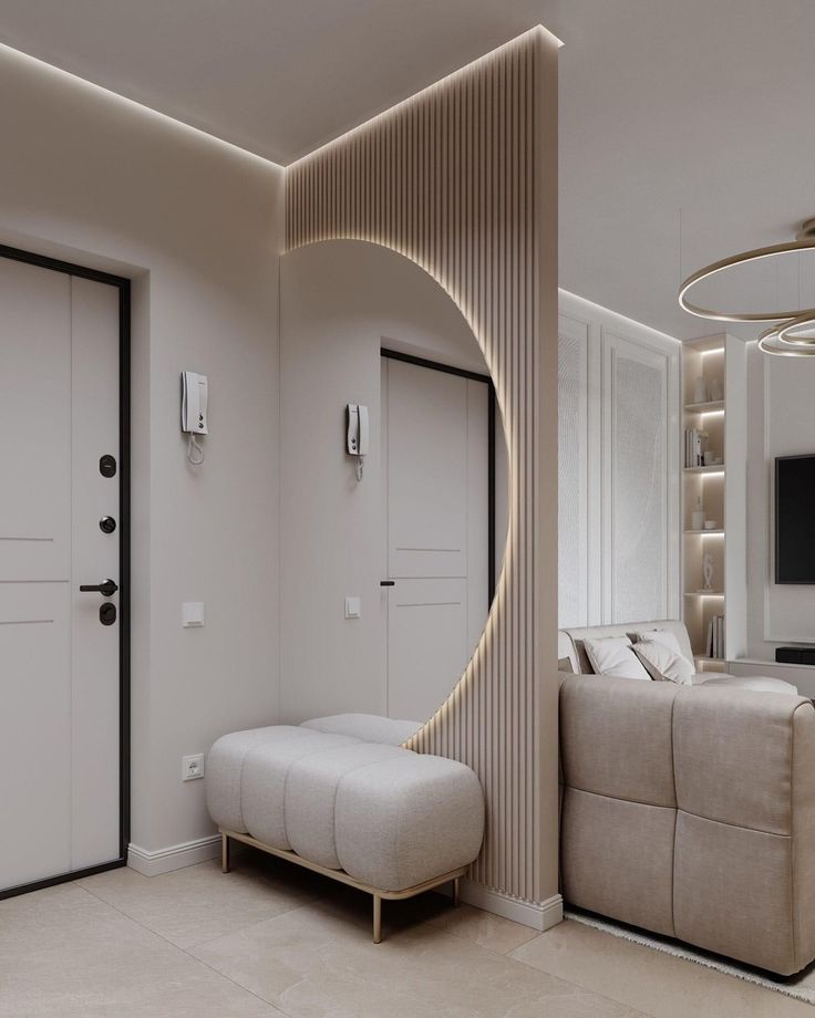 - الألوان لها تأثير كبير على المساحة والشعور العام داخل الشقة، من الأفضل اختيار ألوان محايدة للحوائط، مثل البيج أو الرمادي الفاتح، لأنها تجعل المساحات تبدو أكبر وأكثر إشراق، يمكن إضافة الألوان الزاهية في التفاصيل مثل الستائر أو الوسائد لتكملة الإطلالة.