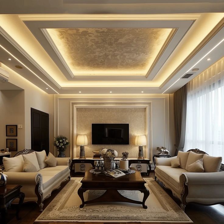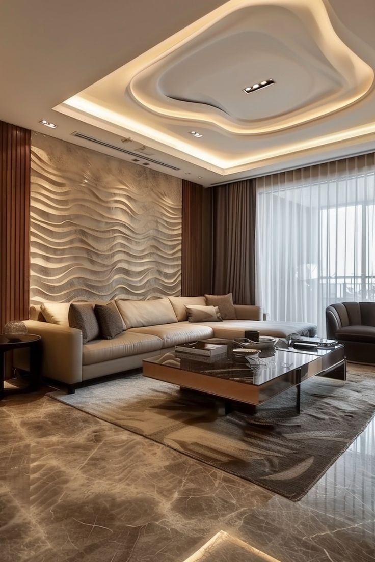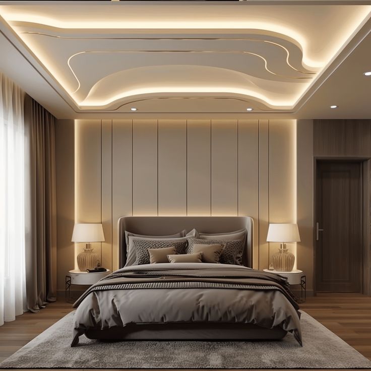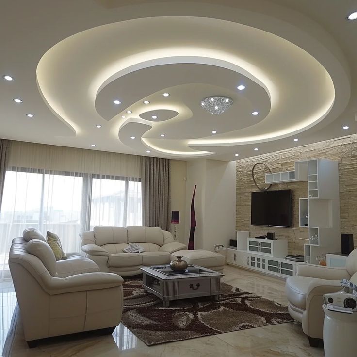 - لمن يبحث عن لمسة من الفخامة، يمكن اختيار التصاميم المائلة أو متعددة المستويات، هذا النوع من التصاميم يمكنه إضافة بعد جمالي للغرفة ويجعل السقف يبدو أكثر إثارة وجمال.