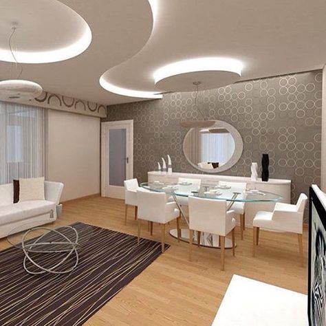 - هذه الأسقف تدمج الإضاءة الداخلية بشكل مخفي بين ألواح الجبس، مما يعزز من جمال السقف ويوفر إضاءة دافئة تعكس جو مريح في الغرفة، تستخدم هذه التصاميم بشكل شائع في غرف المعيشة والصالات الكبيرة.